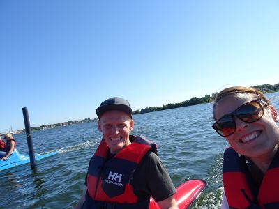 Det blev også til en ekstra tur i sommerferien i uge 29. Her besøgte vi Marina Fiskenæs i Gråsten, hvor vi boede i sommerhus. Vi var forbi Gråsten Slot, hvor dronningen var på ferie. Vi så vagtskifte, det var sjovt at opleve soldaterne helt tæt på. Vi fik badet i badeland, cyklet en masse ture, var på shopping i Sønderborg. I Sønderborg så vi "Dannebrog" skibet, det var virkelig flot. På vej til Sønderborg var vi omkring Dybbel Mølle. Det blev selvfølgelig også til en Tyskland tur :-)