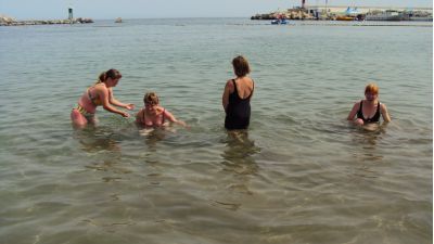 Vejret var skønt med 30-35 grader hver dag, så det blev badet flere gange i løbet af dagen. Vi hyggede, slappede af og så os omkring på øen. En af dagene var vi ude at ride på kameller, det var super sjovt!